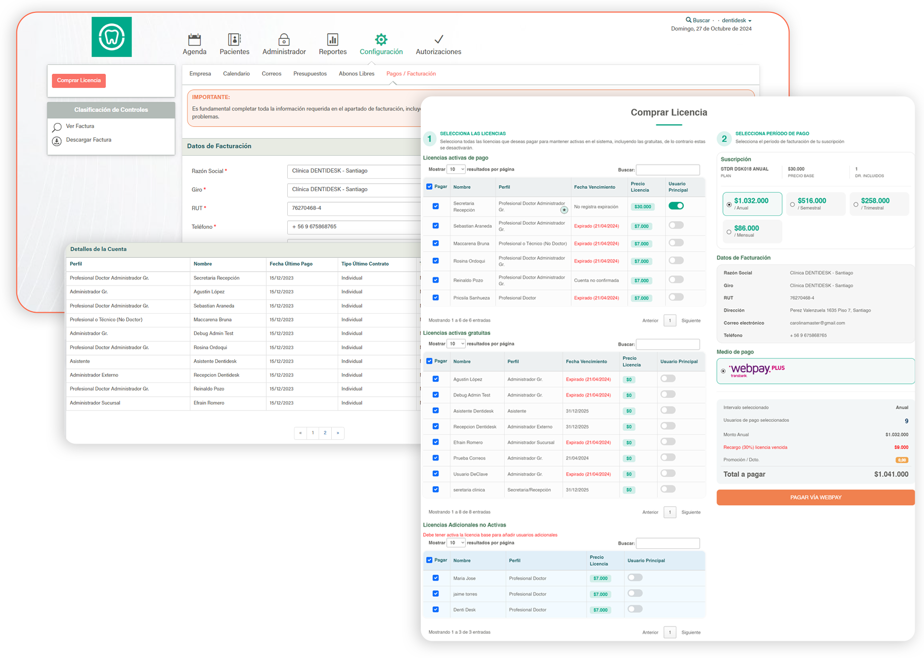 En este apartado es importante que completes todos los datos de facturación. Dentro de esta misma sección puedes ver la fecha de expiración de tus licencias para mantener los perfiles de usuario activos y realizar los pagos a tiempo, llevando todo el historial de registro.